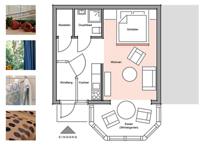 -Wohnbereich mit Sat-TV und Radio/HiFi